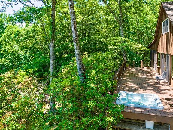 This rustic farm house is located near Baines Mountain in the East Alarka community situated in a private setting surrounded by the beauty of nature, mountains, streams and waterfalls. Property offers a babbling branch in the back of the home with natural waterfalls for year round enjoyment and relaxation. Home boosts 4 large bedrooms, 3.5 bathrooms, an open concept kitchen, living and dining area with large windows and a ton of natural light. HUGE family room with gas log fireplace, combined with a rec/game area and office...the perfect gathering place! An additional bonus, home features a sizable butler kitchen with pantry, perfect for all your food prepping and storage needs. Nice size wood deck with sunken hot tub, a screened outdoor sitting area and a covered front porch. Plenty of room for parking, nice size storage shed and carport area. Within a 14 minute drive to downtown Bryson City. Buildable cleared lot included, located on the carport side of the property. Private Well, Private 4 bedroom septic system. Additional 500 gallon water reservoir included.
