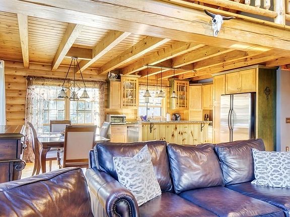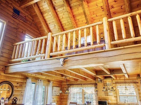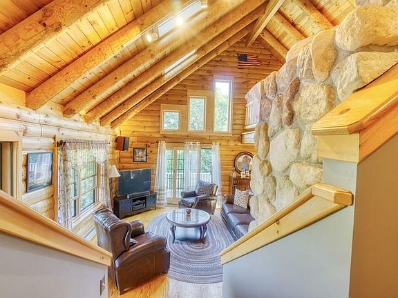 Truly unique opportunity to own a meticulously maintained 3 bed 2 bath custom log home. This home offers a warm and inviting atmosphere on almost an acre of land. Welcoming front porch, open living area with cathedral ceilings, beautiful 2 story stone fire place with pellet stove insert. Beautiful kitchen with granite counter-tops and stainless-steel appliances. First offers a large master bedroom with large walk-in closet, full bath and a second bedroom. The second floor offers a spacious loft, a third bedroom and full bath. FULL unfinished basement w/great ceiling height offers the potential to finish for more living space on the lower level. Manicured lawn lined with beautiful landscaping and irrigation system. Large stone patio with fire pit and motorized awning perfect for entertaining. This home is located close to all major highways, shopping, restaurants and beaches. 20 minutes to Newport, 20 Minutes to Providence & just an hour south of Boston. Call today for your private showing.
