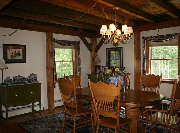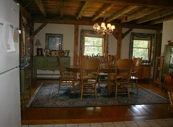VERY PRIVATE SETTING As one enters the kitchen from the side deck the open concept floor plan will wow you. Kitchen is a vocal point within the house, the cooking and eating area as well as the gathering area for family activities. The snack bar accompanied by bar stools will sever as a great place for a quick meal Kitchen features built-in oven, counter top gas stove, porcelain double sink, refrigerator & dishwasher. Oh yes a mirco too. Dining room boast of beautiful wide-plank pine floors, a decorator's dream, a pleasant room that invites you to a meal. Exposed beams magnifies the already spacious rooms including the front to back living room featuring a stone hearth & wood stove. Plenty of room for big comfortable chairs and a sofa. Bookcases will be part of the sale. A notable feature on the second floor of the home is flooring in hall is hardwood. Master bedroom with space to spare, adjoined by a bath, skylights & large closets. Each of the other two bedrooms have skylights & plenty of closet space. Laundry area is in the walk out basement features a deep sink. Washer & dryer is part of the sale. Enjoy a very private setting with a long 300 ft. driveway. The house is outfitted with a new roof in July 2013, the rear deck and stairs installed June 2013. The features noted above truly illustrates the comfortable living one can enjoy.