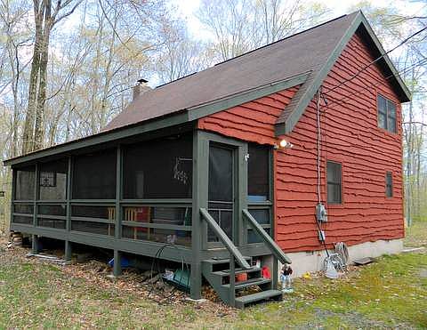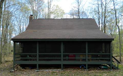 Well built mountain home in amenity filled Big Bass Lake Development, Gouldsboro, PA. This 2 bedroom, 2 bath house is ready for you and your family. Large open floor plan allows the large living room to flow into the kitchen to provide great family times as well as entertaining. Large brick fireplace rises 20' to the top of the cathedral ceiling, just a great look! This property is very quiet and secluded within Big Bass. It is on the end of a cul-de-sac and it borders the Gouldsboro State Park, hundreds of acres of woodlands directl behind it, lots of privacy. Rustic mountain solid wood exterior will provide years of protection. Sit on your large screened in porch and rock the day away, it may become your favorite location in the house. This is a fairly large sized home that needs nothing, recently painted, very good roof, clean interior, and dry crawlspace make this a walk in and relax house. Even the electric baseboard heat has been upgraded to oil filled heaters providing greater warmth and savings.Big Bass Lake Development is one of the premier private developments in the Pocono Mountains. Amenities include 24/7 security, large lake, ski hill, indoor and outdoor pools, clubhouse, tennis courts, fitness center and much more. Right off of I-380 this property is only a short distance to Mount Airy Casino, The Crossings Shopping Outlets, Camelback Ski Resort, and downtown Stroudsburg. In 2015 it will be very near one of the largest indoor waterparks in the country, Kalahari Waterpark.Be sure to take a good look at this one as it is a better quality constructed home than most, built by respected Ar-Tech builders. This home is ready to be your new address.