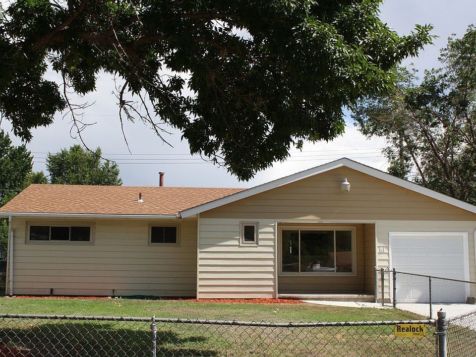 Completly Remodeled featuring 3 Bedrooms and 1 Expanded large bath. This Ranch home features new paint, new kitchen, new roof, new furnace and hot water heater, new appliances, new bathroom with tile backsplash, new carpet, new interior and exterior doors, new hardware and lights, Finished shed/workshop on concrete pad with electric, new driveway and walk way There is home is located on a private cul-de-sac extremely close to Ft Carson.