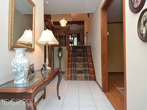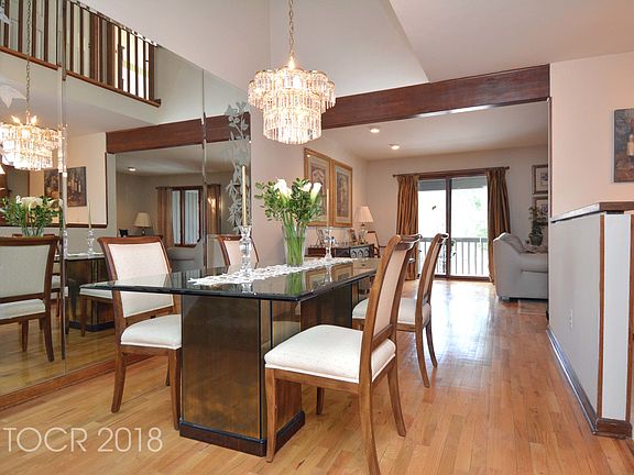 Best location in Brookside Manor! Nestled next to serene woods. Unique townhome with cathedral ceilings, open concept , multi-level living. Entry foyer opens up to cozy family room with gas fireplace. Second level includes modern eat in kitchen with granite counter tops, formal dining room, and spacious living room. Glass sliders open to expansive, covered patio with skylights overlooking quiet woods. Third level includes second bedroom with full bath, ample closet space lining hall, and master bedroom with en suite and separate dressing area. Partially finished basement encompasses large crawl space, washer/dryer, and separate entrance from garage. Additional features not to be missed are hardwood floors throughout, fabulous pool, tennis courts, and club house. Come live in the highly coveted Fardale section of Mahwah! This location won't last. - Basement: partial unfinished, laundry, large crawl space