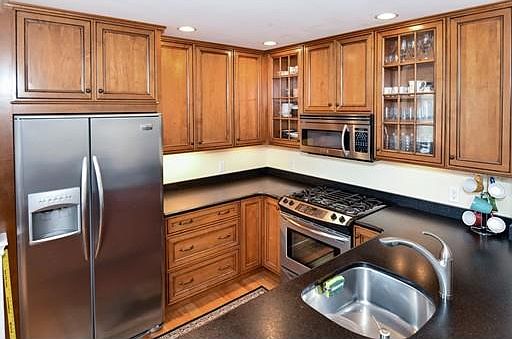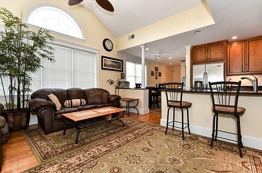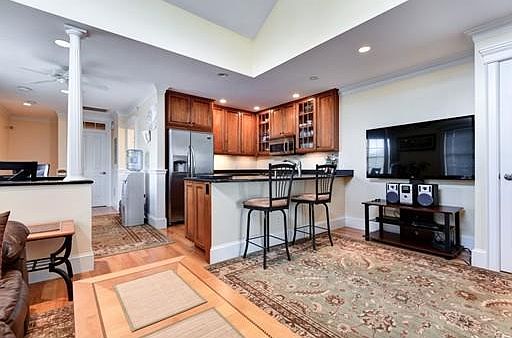 High end penthouse condo featuring 2 large bedrooms and 2 full bathrooms. The living room has cathedral ceilings, hardwood floors and crown molding. The open concept is great for entertaining family and friends. Bright and sunny the formal dining area has hardwood floors and crown molding. The kitchen has custom cabinets, granite counter tops, stainless steel appliances and a large peninsula. The master suite has a large closet and private bathroom. The second bedroom is spacious and also has hardwood floors. In house laundry is an added bonus. Hydro air gas heat and Boderus hot water heater. Close to highway access. A must see property