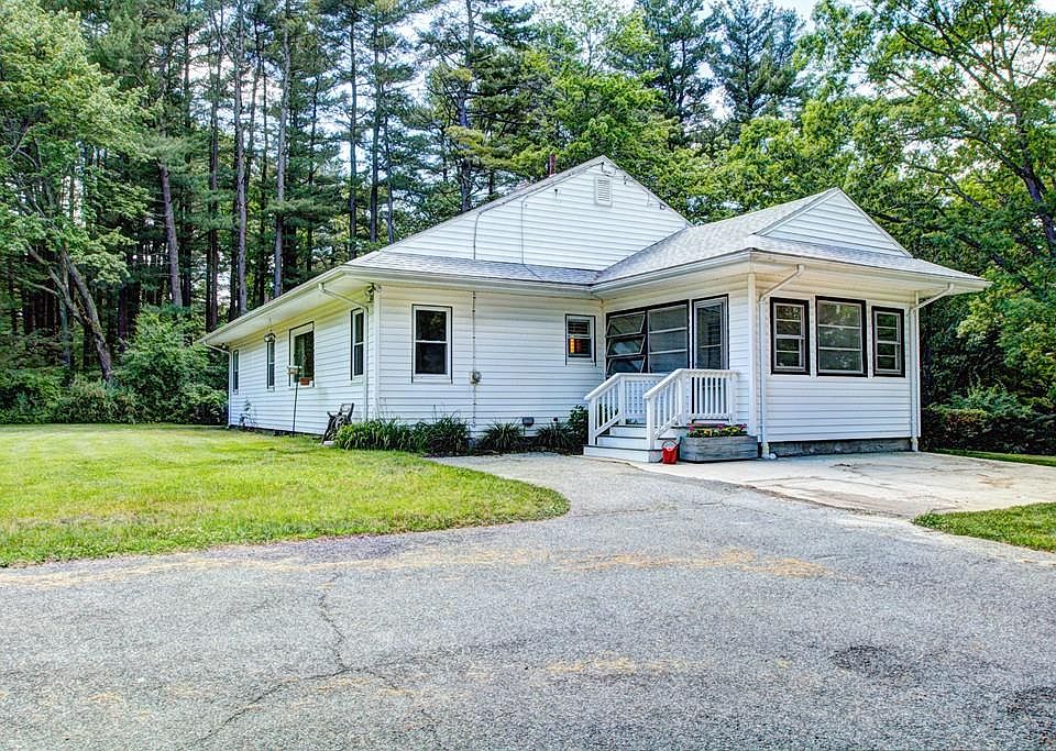 SET WAY BACK FROM THE ROAD SITS THIS PRIVATE HOME WITH 2 ACRES OF LAND. You will love this well maintained, move in ready, 3 bedroom, 2 1/2 bath, 2 car detached garage ranch style house. There is plenty of room for outdoor entertaining in the expansive backyard along with a fenced in area for you pets to romp and play. The long circular driveway will accommodate all your friend's cars. There is plenty of room for indoor entertaining in the formal living room and dining room. Enjoy the views of the pond from the front picture window. The upper level is great for single level living. The lower level has the potential for an au pair or in-law suite with its own separate entrance. Or enjoy it as a game room with a wet bar. Add to this a remodeled main bath, a 1st floor laundry, a workshop, a craft room, plenty of storage, C/A, newer systems, maintenance free vinyl siding, replacement windows, and a large shed. This property is close to Rt. 3, 495, and shopping in tax free NH.