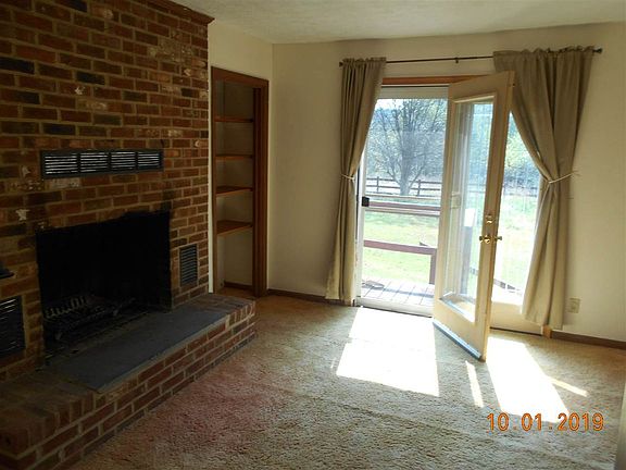 One story on 7+ private acres. Wooded view. 3 BR, 2BA on main floor. Brick hearth fireplace. Rough 1/2 bath in basement. Basement has partially finished rec room. Approx 1.5 acres open, the remainder is wooded. Detached garage, attached carport. Property sold "as-is", seller will make no repairs.