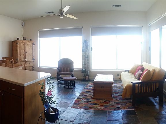 40 ac. of secluded & private, yet nearby city services. Abundant natural lighting due to Lg. windows. Kitchen has stainless steel appliances, corian countertops, fold out spice rack in pantry, soft close drawers, & cabinets has pullouts. Recessed lighting. Lg. walk-in closet in bedroom. Bathroom has recessed metal sink w/pull out basket in bottom cabinet. Reverse osmosis. All electrical home. Underground electrical. Attached heated & cooled studio w/separate entrance. Property has Berrendo Water.