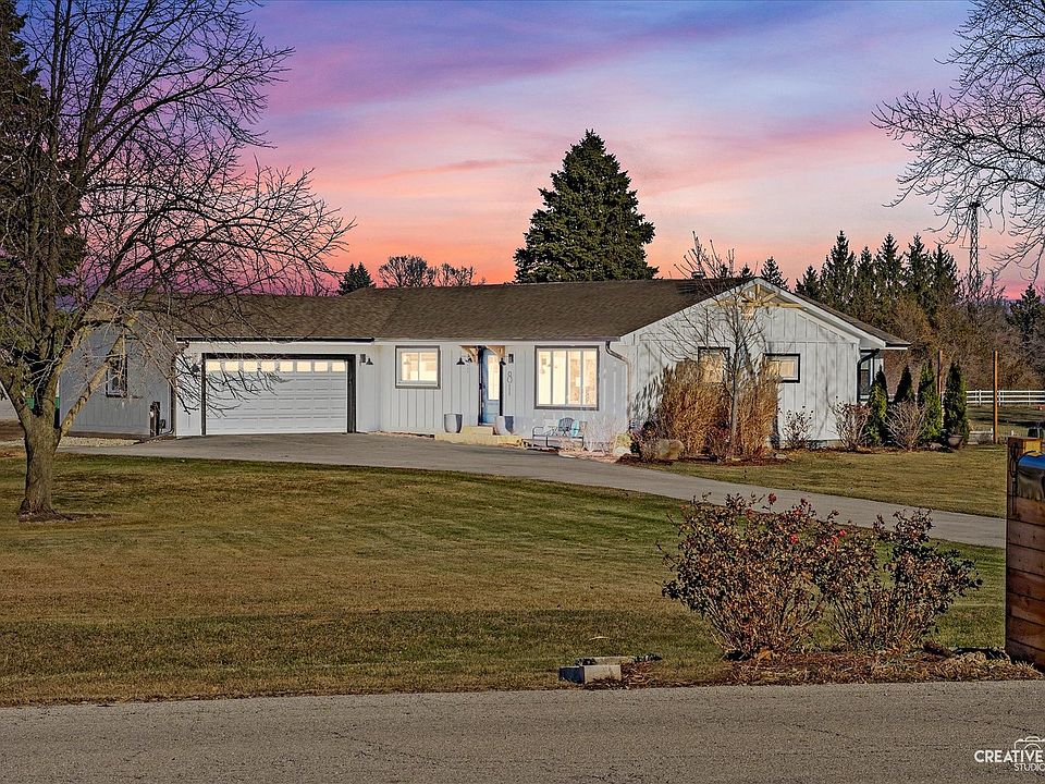 Convenient to town yet all the privacy a rolling hills country setting has to offer, this completely updated ranch is ready for for new owners. Gleaming hardwood floors carry thru the majority of this single story home. Open floorplan yet so cozy, especially sitting in the back family room with gorgeous vaulted ceilings, fireplace and overlooks the sprawling 3+ acre property. So many updates in this pottery barn inspired ranch home. Kitchen boasts generous cabinet and counter space with granite counters and is adjacent to the eating space and living room. Spacious three bedrooms with 2 full baths on main level. A third full bath is located in the sprawling basement awaiting your finishing touches. Some of the "newer" items in this fabulous home are siding, patio with firepit, AC, water system, carpet, hall bath. Don't forget to step out and tour the heated and insulated outbuilding featuring 30 amps of power. Outbuilding is perfect for storage, a workshop or whatever your heart desires. Horses allowed. All of this with so much land to spare and Oswego 308 schools too! Priced to sell with LOW TAXES...see this one soon!