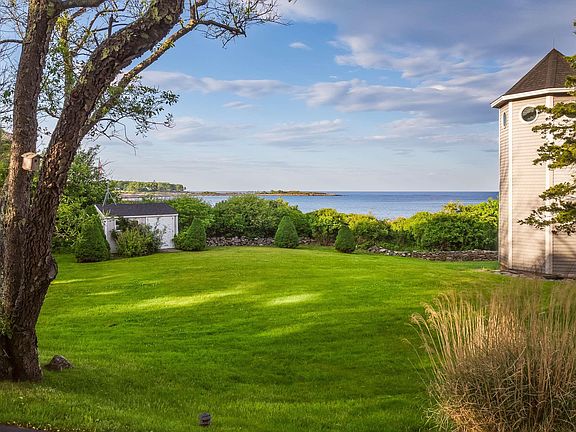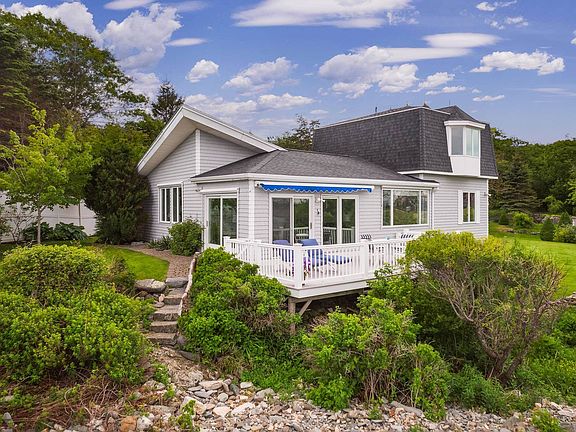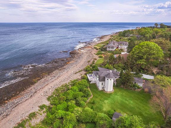 Experience one of the most extraordinary settings on the southern Maine coast on Gerrish Island. This uniquely private seaside contemporary boasts captivating views and nearly 200 feet of direct oceanfront and pebbled beach. The thoughtful design takes full advantage of magnificent water views from nearly every room and harmoniously blends with the home's natural surroundings. Upon entering the home, you are immediately struck by dramatic vaulted ceilings with wood beams, wide open living spaces, wood floors and an abundance of windows that embrace the ocean's crystal blue waters. French doors lead to the water side sunroom and seaside deck perfectly suited for al-fresco dining or an enchanting setting from which to host summer events. The gas fireplace sits prominently in the grand living room and the adjacent dining room which all take advantage of the magnificent vistas. Additionally, the level offers a U-shaped kitchen, a guest bedroom with stunning views, a laundry area and connecting full bath, an office and a sitting room. Wake up to the sights and sounds of the Atlantic from the second floor primary bedroom suite with spa-like bath, double vanity with quartz countertops, multiple closets and custom tiled shower. The finished lower level provides flexible space in addition to a full bath and storage. The property is further enhanced by a 1-car detached garage, shed generator, stone walls, rolling lawns, ornamental trees, mature perennials and magical paths to explore.