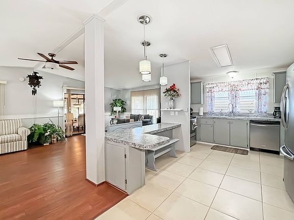 Live the dream in this quaint turnkey 2 Bed / 2 Bath home, located on a cul-de-sac, that offers tons of natural light and great use of space. The spacious kitchen comes complete with a large, oversized pantry and stainless-steel oven/range, fridge, microwave and dishwasher. Hardwood, vinyl & tile floors run throughout from the entry to the bedrooms and lots of large windows give this home natural lighting in every room you enter. Kitchen also boosts a nice island for you to sit and enjoy your coffee, that overlooks the dining area and living room area. Other appliances included are washer and dryer set. Some upgrades that were done include a 2017 A/C unit, replaced receptacles, switches, lights and ceiling fans, as well as upgraded windows, (that are protected with hurricane shutters home comes with) and appliances ALL in 2019. More features included with this property are ceiling fans, built-in cabinets, walk-in closet, En-suite bathrooms, smoke alarms and cathedral ceilings. Take pleasure of the divine Florida sunset, in your enclosed porch area and once outside you have a screened in porch for entertaining guest or to just enjoy the well-maintained landscaping and trees at any angle of this home. With plenty of garage space, a carport for convenience and extra storage space in the shed, this very spacious and quiet home needs nothing but you. Come see it for yourself! Jamaica Bay is a gated community of manufactured homes in south Fort Myers designed for age-restricted residents who want to enjoy a fun and active lifestyle. Amenities include: 24-hour staffed gatehouse, (3) clubhouses with verandas, poker room, craft room, (2) heated pools, whirlpool spa, fitness center, locker room with saunas, (12) shuffleboard courts, (3) bocce ball courts, (4) tennis courts, (2) pickle-ball courts, putting green, (2) horseshoe pits, (4) billiard tables, pub tables, library with wireless internet, (3) stocked lakes, BBQ & picnic areas, and planned community activities. Do not miss out on this stunning Florida home - Come play at Jamaica Bay!