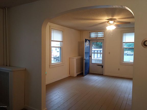 Your garden can be the pride of Broadway. Where there are so few side or front gardens in Jim Thorpe on Broadway this could be a golden opportunity for the right gardener. Follow the gardener path to the concrete patio with enough room for your picnic table and chairs. Step into the naturally lighted dining room, kitchen combo through the double glass sliding doors. This 1750 sq. ft. home has great closet space, 3 bedrooms, 1.5 baths plus extra room in the walk up attic. Enter the home from the front and you will be greeted by the random width flooring and archway common in 1881 when this house was built. Natural gas and washer/dryer hook up in the basement. Close to Shops, Mauch Chunk museum, Opera House, JT jail and train station. House has new roof.