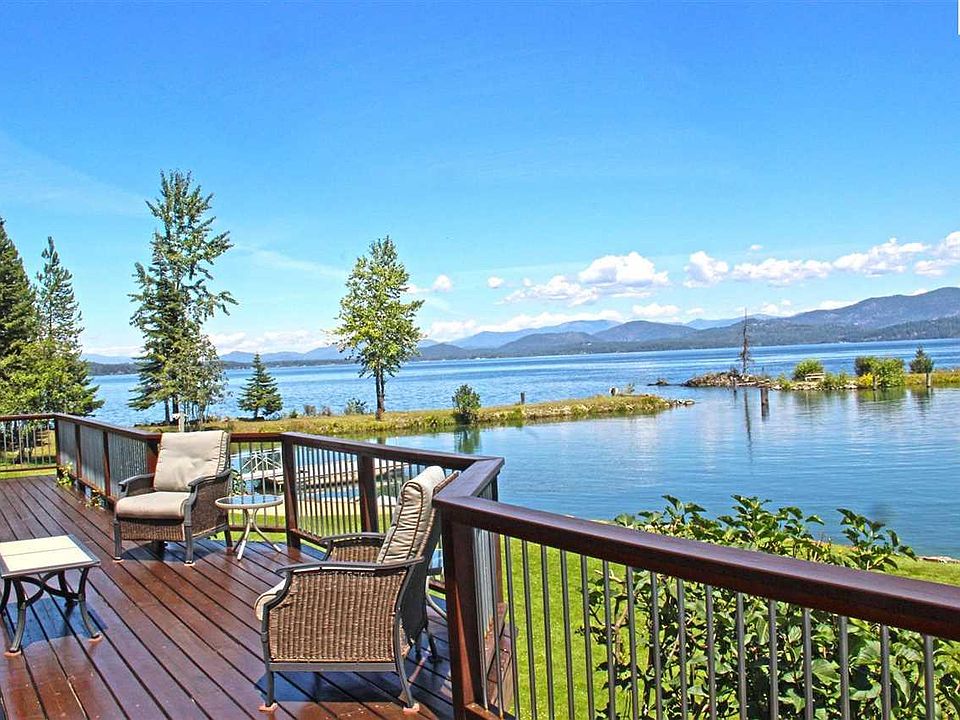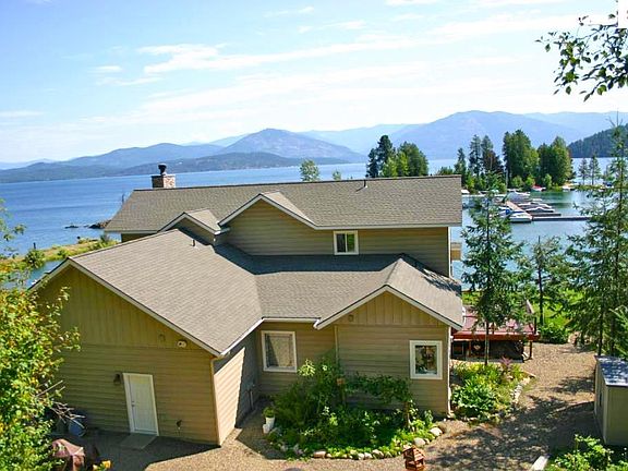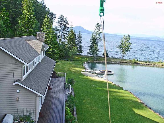 Waterfront Custom home with 2 legal parcels, a gentle grassy shoreline, sandy beach & two (2) protected docks. Desirable Sourdough location, immaculately maintained home with a welcoming entry that leads to a living room with showcasing water views, stone fireplace, 4 bedrooms (master on the main level), wonderful kitchen w/pantry, 3 bathrooms. Luxury accommodations include a master Suite w/walk-in tiled shower, custom built dresser & access to outdoor living space (ready for hot tub). Professionally landscaped w/sandy beach on the water's edge, sprinkler system, rock accents and designed to fully capture the beauty of the lake & encompassing mountain views. Efficient heat system, central A.C & storage everywhere. Community Island with boat launch, wooded trails, tennis & basketball court, sandy swimming beach's, BBQ areas & a private marina. A terrific family home close to everything; Sandpoint, Ski Resort & Forest Service lands. 2 lots & 2 docks! This property offers it all!
