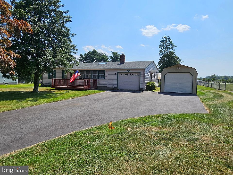 Situated on just under an acre of land this three bedroom two full bathroom Ranch is just waiting for some TLC. Enjoy your morning coffee overlooking the nice size front yard on the front deck or the enclosed front porch. Enter into the large living room with a brick fireplace. The master bedroom has the full bath with stall shower. Nice size eat in kitchen. Large laundry room on the main floor also connecting to the attached garage. There is a den off the kitchen that leads outside to the covered patio. Full basement with an outside entrance. In addition to the forced air there is baseboard electric heat in each room all controlled separately.