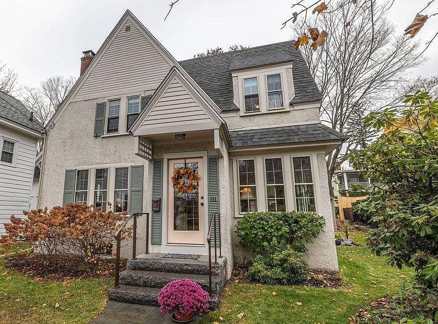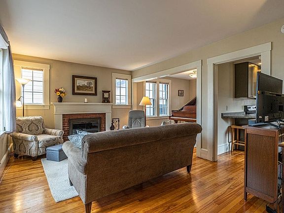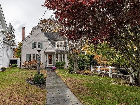Delightful stucco Tudor style home has charm and is positioned attractively on its West End lot. From the sidewalk the granite and slate walkway leads past a granite light post and custom stair rails into the foyer of this beautifully maintained home. Living Rm has hardwood flooring and a wood burning fireplace, recently lined. Kitchen has newer counters, cupboards & stainless steel appliances. Separate dining room and a family/sunroom for relaxed living. The primary bedroom is large, w/ 2 closets. Second bedroom and renovated bath are on the second floor. The garage easily fits 2 cars, garden equipment, etc. and the walk up storage above is fantastic. A patio is nestled in the back, flanked by evergreens for privacy. Within the past 10 years, the following improvements have been made: new roof, siding, new sheetrock incl. ceilings, energy upgrades & insulation, arborist work on trees, storm windows, gutters, updated electric, landscaping. An easy stroll to downtown, state offices, schools & White Park.