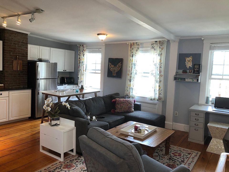Beautiful and sunny apartment available 9/1. The unit has two bedrooms and a large, open living room/kitchen area. The old oak floors and exposed brick chimney give this space so much character. Enjoy in-unit washer dryer and a lovely shady deck as well! The location is ideal with Piers Park, bike path, harbor walk, and maverick T stop, and plenty of restaurants all within walking distance.