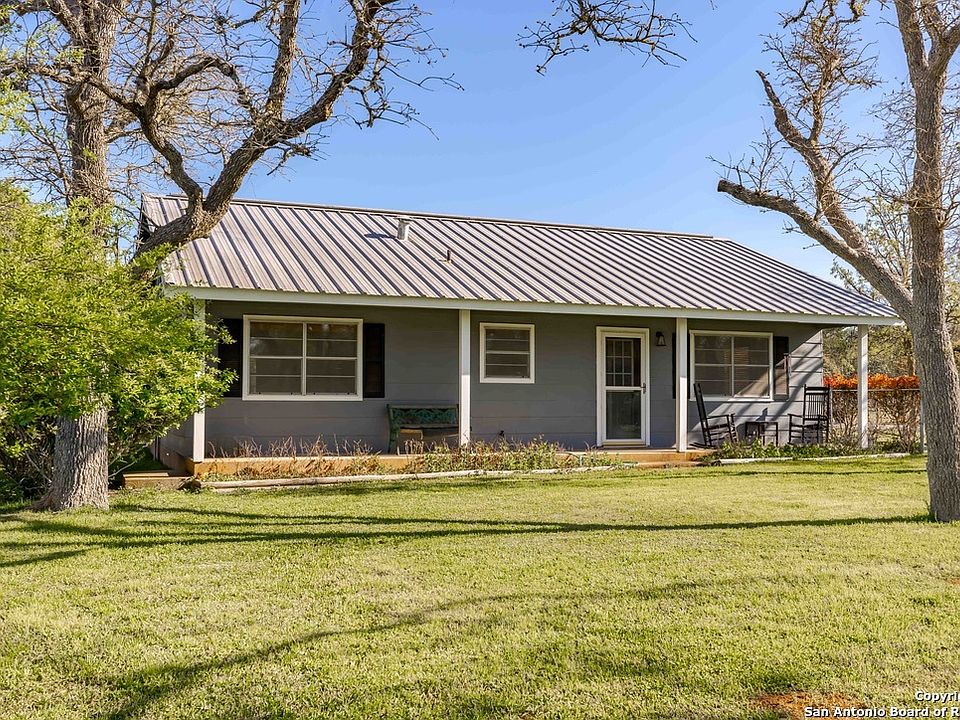You'd never imagine you are only 7 miles from the heart of downtown Fredericksburg Tx. Relax beneath the shady trees on this generous 2 acre lot. Watch the deer roam the area and enjoy the stars filled evenings. This home has been freshly painted and flooring has been replaced. Appliances were recently upgraded, including a space saving in sink Fotile dishwasher, making this home move in ready. A 35x45 area is high fenced and cleared waiting for you to design your own garden. Main house has 3 bedrooms and 1 bath and there is a guest room with a full bath in the adjoining building, for a total of 4 bedrooms and 2 baths. A double shed provides space for equipment and storage. A wonderful property as it is or a solid beginning to build on!