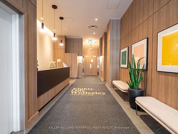 Welcome home to this beautiful, new (2023) building "Eighty One Wellesley" in the Church and Wellesley Village neighbourhood, conveniently located close to Wellesley Subway Station, Toronto Metropolitan University, U of T, and the heart of downtown Toronto, with many local restaurants, bars and shops all within walking distance. This very spacious corner suite features 680 square feet of bright, modern, open concept living with floor to ceiling windows that allow for lots of natural sunlight to flood into the unit. Extend your living space outdoors with the oversized 150 sq.ft. balcony (with a very rare gas BBQ hook-up and 2 separate access points from the dining room and primary bedroom), perfect for entertaining outdoors or enjoying some fresh air without having to leave your unit. The open concept living, dining and kitchen area are equally suited for entertaining indoors, and the comfortable primary-sized bedroom with mirrored double closet as well as a stylish 4 piece bathroom and ensuite laundry make this suite ideal for someone just entering the Toronto real estate market. The unit also comes with 2 side by side lockers that are located on the same floor as the unit, allowing for easy access whenever needed.