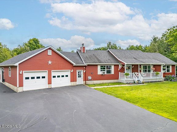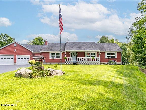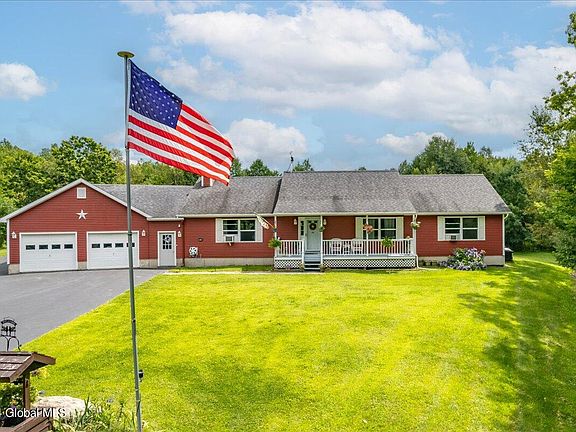 This 3 bedroom 2 bath Ranch is perfect for anyone looking for privacy! One level living with an open concept kitchen, eat at island, huge dining area and living room. Sliding glass door to the deck-with retractable awning, back yard and 6.31 acres. Full basement with plenty of storage space. Buderus -Hotwater baseboard heat with a Pellet stove that heats the entire house!! 2 garages-both attached. 2 car front load and 1+ car side load- perfect for a boat, motorcycle or other toys!! Whole house generator. Beautifully landscaped yard w a Small stream on the property! the Utility / Mudroom adds storage and a great place to drop boots and coats! Sit on the covered front porch and relax!! Come take a look and make this your new home!