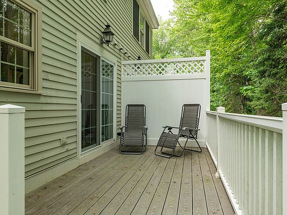 Wonderful opportunity at a fabulous price! Welcome to Woodland Green. This lovely updated, move in ready END UNIT 2 bedroom, 1.5 bathroom townhouse is in a desirable, well kept, clean and quiet association! The bright eat-in kitchen features newer appliances, and cream shaker-style cabinets. Right off the kitchen, through the sliding door is a private composite deck overlooking the woods and nature with steps leading off the deck to a side yard common area, perfect for dogs and kids! New carpet on the stairs, and nice laminate wood and tile floors throughout. A tiled entryway, large family room (non-working fireplace), half bathroom, eat in kitchen and conveniently located stackable washer and dryer are all on the first floor. The two bright and sunny bedrooms upstairs are separated by a full updated bathroom. Public water, sewer and natural gas. An additional private exterior storage shed is right next to the front door for any larger outdoor items. Woodland Green condos are great for commuting and conveniently located close to grocery stores/shopping and near the seacoast and mountains. These buildings were designed for maximum privacy, with views of the woods and wildlife right out your back door. This is a wonderful place to live, come see for yourself! Quick close possible.