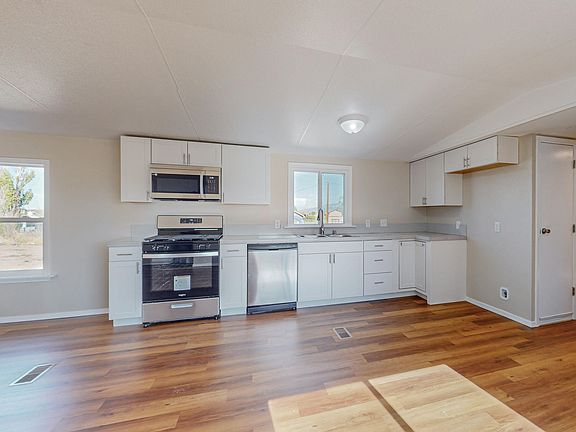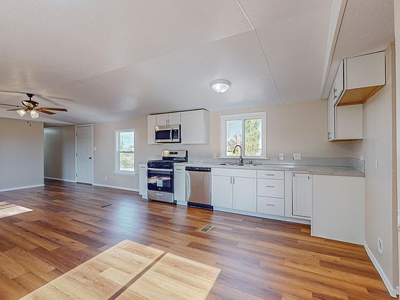 Updated Single Wide on 1/2 acre lot. New cabinets, stainless steel appliances, new laminate wood flooring throughout. New Windows, Fresh paint, new fixtures and doors throughout. Remodeled Bathrooms have new tile surround, vanities and fixtures. Move in Ready.