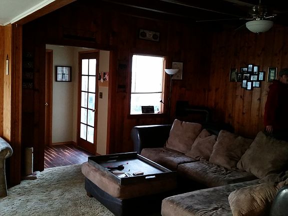 Nice 3 bedroom home on a spacious double lot Includes a large living room, Enclosed front porch (mudroom) spacious laundry room and many extras including therapeutic bath, knotty pine walls, patio, fenced back yard, fruit trees and a fully paved drive. Double garage with attached shop/storage building.