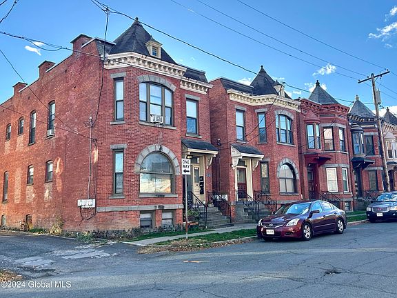 This is the investment property you've been waiting for. The neighboring row of brick homes are all well maintained. Maybe you're looking for a large apartment for yourself while having two rental incomes to offset your expenses. Current rents could be much higher. The one way street has less traffic with plenty of on street parking for guests. Maintenance free brick exterior with off street parking for 3 cars. Laundry in basement. The side road is town owned and maintained with snow removal. Price Chopper is only 4 blocks away.