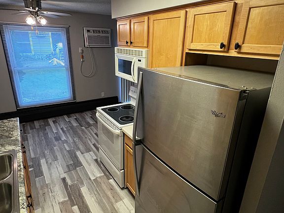 2BR 1Ba main level condo with approximately 800 square feet. This is in a community of 11 buildings with each building/entrance having 8 units. Brand new carpet and pad, freshly painted, Electric range, microwave, refrigerator, dishwasher, wall air conditioner in unit. Washer and dryer in building on ground level along with storage room on the second level. One designated parking space included and additional parking is available. Small patio outside the living room. Rent includes heat, water, sewer, gas, and trash. Residents pay for electricity, internet, tv. No dogs allowed in the condominium association. Background check on every adult living in the unit includes: income, credit, rental history, and criminal background. No Smoking in the building. No dogs allowed.