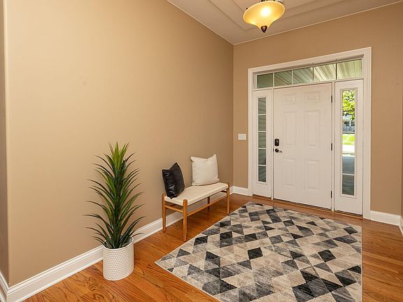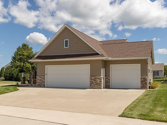 This exceptional custom-built 2 bedrooms, 2 baths, and 3 car garage slab-on-grade home was designed with every detail in mind and showcases superior craftsmanship throughout. Built with 6-inch encapsulated walls, in-floor heat, 10’ ceilings, 8’ doors, bullnosed corners, and stunning hardwood floors, the quality is evident at every turn. The gourmet kitchen features custom cherry cabinetry, granite countertops, walk-in pantry with etched glass door, tiled backsplash, and stainless-steel appliances. A sun-filled family room with racetrack ceiling, surround sound, and recessed lighting flows seamlessly into the dining area and sunroom with vaulted ceiling, fireplace, and walkout to stamped concrete patio.