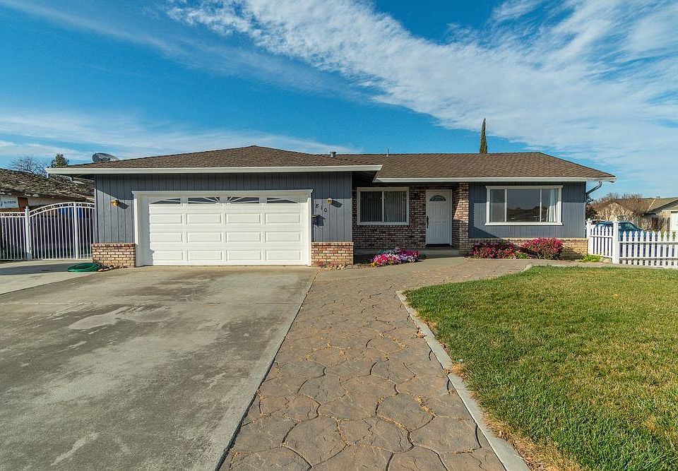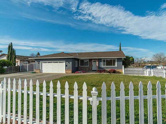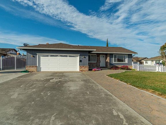 Homeownership opportunity at 810 B Street in Hollister, CA. The 1,987 sq ft home has four bedrooms and three full bathrooms. Single story. Corner lot. Huge backyard with potential for an ADU. RV or possible oversized parking. Garage has been converted to a studio. Updated large kitchen with high ceiling, ceiling fan, granite slab island with breakfast bar, tile flooring, and more. Kitchen opens to family area. Separate dining and living areas. Laundry area. Composite roof. Wood burning fireplace. Storage sheds. Covered patio.