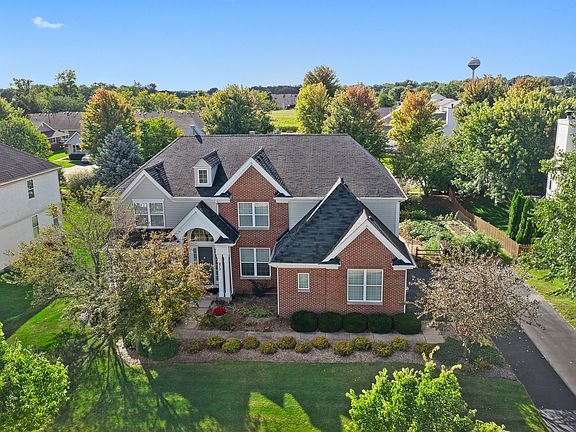 LOOKING FOR A SPACIOUS HOME with 3 Car Garage in the far Northwest Suburbs? This is it! Now available in Hampshire, IL, a former Builder's 3,400 square foot, model home with 4 bedrooms, 2.5 baths, and a full basement. This home has been carefully maintained by the original and only owner. The brick exterior faces East and the side-load 3 car garage offers impressive curb custom-like appeal. As you enter, the 2-story foyer is bordered by a separate and sizable formal living room on one side and dining room on the other. You will notice an open main floor with a curved staircase accented with oak railings. The center of the home is the grand family room with arched doorways, 2 story ceiling, gas fireplace, and an abundance of windows and natural light. Take in the kitchen with 9' ceiling and massive island with a breakfast bar. 42" Upper Cabinets, a planning desk, and walk-in pantry enhance the exceptional storage options. The main floor is completed by a home office. As you move up to the second level you will be wowed by the "bridge" with an overlook to the Family Room. Each of the 3 secondary bedrooms is generously sized with large closets and the hall bath is connected to 2 of them. Nearby, enjoy the convenience of the roomy laundry room with a deep sink. The Primary Suite is located privately and exclusively across the open walkway. Featuring two walk-in closets, two vanities, and a large corner soaker tub, you will get a complete spa-like experience. Your tour will finish with a trip downstairs to the large, full, unfinished basement with so many possibilities for the future! Be sure to view the SUMMER PHOTOS on this listing to really appreciate the years of love and care that went into the landscaping, garden, and beautiful fruit trees in the backyard. It's only a 10 minute drive to I-90. Check out the 3D Virtual tour and Aerial video! Make this your next home!
