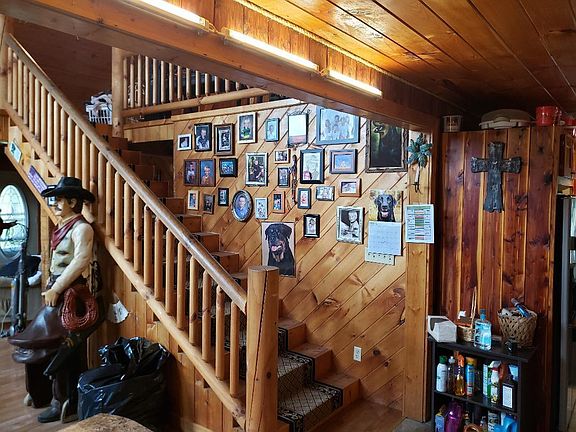Great 13.53 acres close to the city. Very private. This charming log home is a two bedroom, 2 full bath, large kitchen. Kitchen features lots of cabinets, range, refrigerator, dishwasher, microwave and a Mitchell working wood kitchen stove. Living room/dining room features soaring ceilings. Bedrooms with walk-in closets and large bathrooms. Hardwood floors plus ceramic in kitchen and baths. There is a 24 x 48 two car carport with a large attached game room. Covered front porch and deck off the side looking to a spring feed creek with waterfall. Creeks feeds into a ¾ acre pond that is stocked with fish. Next to the pond is a beautiful 1 bedroom cabin with a deck overlooking the pond. Range and refrigerator remain in the cabin. The cabin is currently rented for $600.00 a month on a month to month basis. There is also a 60 x 60 metal building with three garage doors, electricity and a 12 foot ceiling. Part of the pasture is fenced. Lot is level to sloping. SQUARE FOOTAGE IS APPROX. Buyer or Buyers agent to verify all information.