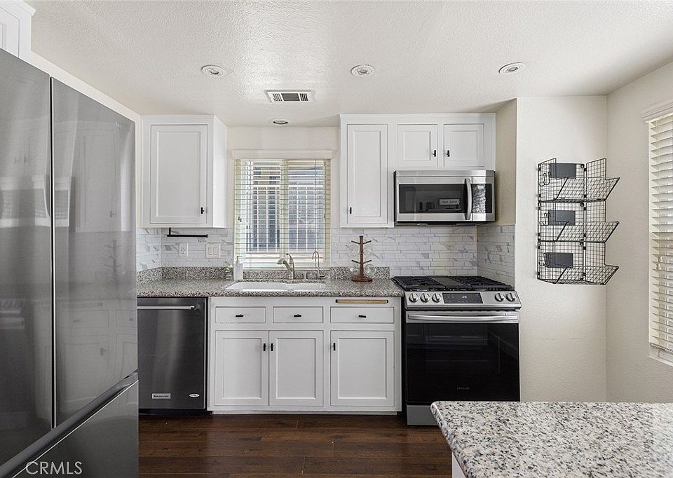Welcome to the gated and pristine Knowleton Manor community that exemplifies true Cape Cod architectural style and all that the thriving Costa Mesa “Triangle” offers. Located at the end of a quiet cul-de-sac, access is only permitted through secured subterranean parking - with two homeowner assigned parking spots - or code required pedestrian gate entry. Unlike others, this specific condo is an end unit with only one adjoining neighbor and is conveniently tucked away towards the back of the complex away from the major street or noise. Upon entry, you’re met with grand vaulted ceilings in an expansive living / dining area complimented by a gas fireplace and custom mantle. Enjoy the quaint and private outdoor patio right off the living room with artificial turf trim and an exterior storage closet. The galley style kitchen feels more open with multiple entryways and is fully equipped with a nearly brand new stainless steel appliance package, granite counters, upgraded hardware, recessed lighting, with functional grocery baskets and shelves. Stackable washer dryer is accessibly located inside the home behind hallway linen doors, across from an additional pantry/closet to maximize interior storage in every way possible. The carpeted master bedroom is located on the first level with vaulted ceilings, a custom built-in closet with amazing drawers, organizers, and shelving as well as extra linen cabinets. With dual access points, the full sized guest bathroom has been completely remodeled and revamped with an oversized vanity, custom floor and shower tiles, a deep shower tub, and upgraded hardware and fixtures. Head upstairs to the optional secondary bedroom with a stand alone closet, or utilize the loft space as a workout / entertainment / work-from-home area with plenty of natural light. Throughout, the home is ladened with upgraded ceiling fans, dual pane windows and blind treatments to maintain a comfortable interior temperature, as well as central AC. The grounds boast upgraded vinyl fencing, artificial and water-conscious turf landscaping, updated roofs and full exterior paint and siding completed in recent years. This home’s highly sought after location warrants that walkability lifestyle to The Camp and The Lab dining/entertainment, and nearby South Coast Plaza, the esteemed Sergerstrom Center for the Arts and closely adjacent to major 405/55/73 freeways.