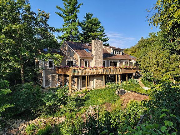 Bob Webb, custom built, hillside ranch. Open, contemporary floor plan: Two story foyer with lovely stained glass. Open stair case on left to 20'x 24' loft w/ skylights. Perfect location for home business or private retreat. 14'x 17' Master suite off foyer. 15'x 16' master bath: vaulted ceiling, 3 skylights, stained glass, whirlpool tub, shower, bidet. Great Room off foyer w/ access to kitchen with new ceramic tile flooring. 15'x 43' kitchen/family room. Family room features vaulted wood clad ceilings, stone fireplace & sliding doors to deck. Kitchen is amazing w/ vast amount of cabinets, corian counter tops, smooth top range, pantry, desk, locked wine storage & sliding doors to spacious screened porch. Screened porch w/vaulted ceilings & skylights overlooks lovely gardens w/ tranquil water feature. Half bath near large laundry room & half bath for guests off foyer. Lower level walk out could be separate living quarters. 3 bedrooms, 1 full bath, huge family room w/ gas fireplace. Lots of unfinished storage area. Fully excavated lower level except for minature crawl space. Additional feature of this home is a potting shed that is part of the house w/ its own entrance from the backyard. Beautiful gardens & landscaping all around this lovely home to include recently planted wildflowers on the hill. Beautiful Birds & Butterflies!! Please look at our floor plan online & click on the "cameras" to see different views of each room. Then make your appointment today for a private tour of this very special home.