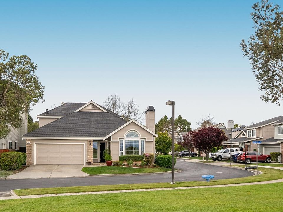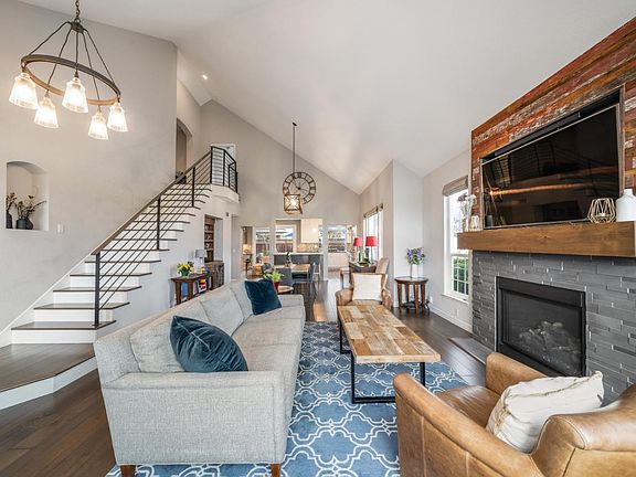 Unleash your inner entertainer in this stunning Bridgeport corner lot home! Step inside to soaring ceilings and a grand living & dining area. An Alderwood wine bar and custom fireplace with a mix of ledgestone and reclaimed barn wood create a warm, inviting space. Gleaming maple floors flow throughout, leading you to a chef's dream kitchen. High-end appliances, quartz counters, a large island a separate breakfast bar for 6, plus custom Alderwood cabinetry in the adjoining family room makes hosting effortless. Sliding glass doors open to a backyard oasis with a built-in BBQ. Relax in the expansive first-floor primary suite, featuring a walk-in closet, updated bath, and private backyard access. Upstairs, a spacious landing with built-in shelving and a convenient desk nook provides a perfect home office or reading retreat. Two secondary bedrooms and a shared bathroom complete the upper level. Located near Sandpiper School and Community Center, this home offers convenience, and an idyllic lifestyle. HOA fees: $286/mo (Bridgeport HOA), $84/yr (RSOA)