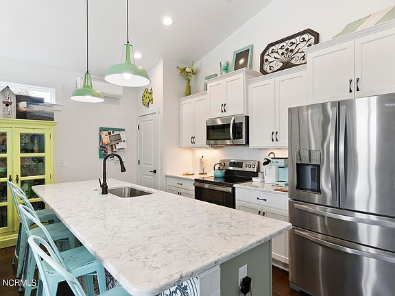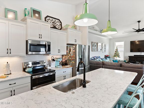 Welcome to your dream coastal retreat in Carolina Beach! This stunning 5-bedroom, 3-bathroom home offers the perfect blend of comfort, convenience, and coastal charm. The ground floor offers a private living area complete with 2 bedrooms and 1 bathroom, along with a full kitchen. This versatile space can be utilized as an income producing rental, provide an in-law suite or host your guests in style. Situated in a prime location just 8 blocks from the beach, boardwalk, and restaurants, this crafted coastal construction home is designed to cater to all your needs. As you step inside, you'll be greeted by a spacious and inviting living space that exudes a warm, beachy ambiance. The convenient pedestrian pathway that leads from the home to the beach and the bustling business area. Imagine taking leisurely strolls to the shore or exploring the vibrant local scene at your leisure. Situated outside of the flood zone, this home offers peace of mind during coastal living. You'll also have access to the Island Greenway, perfect for outdoor enthusiasts and nature lovers looking to explore the natural beauty of the area. For your vehicles, a 1-car garage and ample parking space for your golf cart are provided, ensuring you have plenty of room for your beach essentials and transportation. The private fenced backyard is a serene oasis featuring a firepit, ideal for relaxing evenings and outdoor gatherings. Enjoy the fresh sea breeze and soak up the sun on the spacious front and back decks, perfect for sipping your morning coffee or hosting BBQs with friends and family. An additional storage building is onsite. This home is equipped with a whole-house water filtration and softener system, enhancing your water quality and overall living experience. Whether you're looking for a full-time residence or a vacation getaway this Carolina Beach gem is ready to make your coastal dreams a reality. Don't miss your chance to own this coastal paradise!