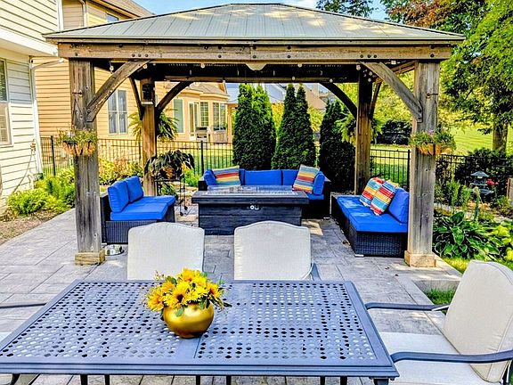 This stunning 4-bedroom, 3.5-bathroom luxury home in North Aurora offers an impressive 4,275 total square feet across three finished levels. The basement is a true retreat, featuring a custom home theater and a spacious spa-like full bathroom. The remodeled kitchen includes new appliances and stylish finishes, complemented by a fireplace wall remodel, redesigned office, and hardwood flooring in the master suite and upper foyer. Fresh paint throughout, new receptacles and light switches, and smart home accessories add a modern touch. Step outside to a private backyard oasis with a concrete patio, cedar gazebo, waterfall, and fencing-perfect for entertaining or relaxing. Major updates provide peace of mind, including a new roof (2025), new water heater (2025), new exterior paint (2025), and a new garage door with opener (2020). Every detail has been thoughtfully designed, making this home a rare find that blends comfort, style, and functionality.