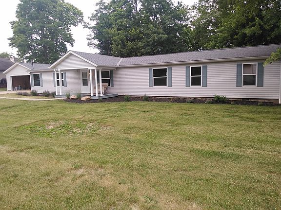 This is a must see gorgeous totally remodeled manufactured ranch with 2.5 bathrooms and 2 car insulated & wired detached garage! There are so many updates!! New roof 2015, 2 new sky lights 2015, new furnace 2016, all new windows 2018, new a/c & heat pump 2019, all new wood floors & crown molding, new bath & kitchen cabinets counter tops, commodes, tubs, showers, sinks, railing, drywall & paint and too much more to name here. Enjoy your beautiful view on the new wood deck! So close to the new Kohl;s, Amazon, Kroger's, freeways and very friendly neighborhood. Welcome to your new home!
