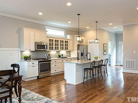 View of Downtown from private second floor balcony of stunning master bedroom! Located close to the heart of Downtown Raleigh this custom built home is ready for you to move in!! Hardwood floors throughout the main floor! Chef's kitchen w/walk in pantry, granite countertops, stainless appliance & HUGE island. Large bedroom on the main floor w/adjacent bath. Master suite includes great WIC, en suite bath w/dual head master shower. Large secondary bedrooms w/shared hall bath. Large flat fenced in back yard!