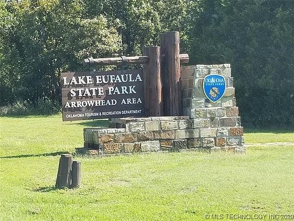 RETURNS TO MARKET - NO FAULT OF THE HOME! SELLER REMAINS MOTIVATED WITH PRICE DROP IN LAKE EUFAULA'S ARROWHEAD ESTATES!! This three-bedroom, 2 bathroom home has many updates and bright accents to provide you an inviting lake home or full time living IN A STATE PARK ON BEAUTIFUL LAKE EUFAULA! The home sits upon a large corner lot with convenient circle drive for easy entry for your boat trailer and other lake toys. With the corner lot joining Country Club Rd the owner has additional options to access the backyard! The shaded canopy of mature trees will be a welcomed bonus on those dog day summer outings. The home includes a portable whole house generator that has a quick outdoor connect and inside switching/breaker system. The property is located in Arrowhead Estates which has a beautiful 18 hole golf course, miles and miles of hiking/horse trails, stables, and an excellent air strip with leasable hangers. The cities of McAlester and Eufaula are close by for shopping, eats and marinas and sandy beaches. There is a AE community boat ramp just 1 mile from the home with plenty of parking. The backyard is privacy fenced and has a cross fenced pet run. Enjoy your covered patio, hot tub, and waterfall/fish pond while enjoying the heavily treed view of the neighborhood- especially during those snowy winters! There is a heavy duty dry storage building in the backyard for securing your tools and other needs. The property has an air conditioned storage building in the front that has been used for storage and a extra sleeping room. The wood-burning fireplace has propane hookup and a portable tank does remain with the property. THIS HUGE PRICE DROP WILL BRING MUCH INTEREST! CALL TODAY TO SEE THIS UPDATED LISTING WITH HUGE PRICE DROP IN ARROWHEAD ESTATES COMMUNITY!