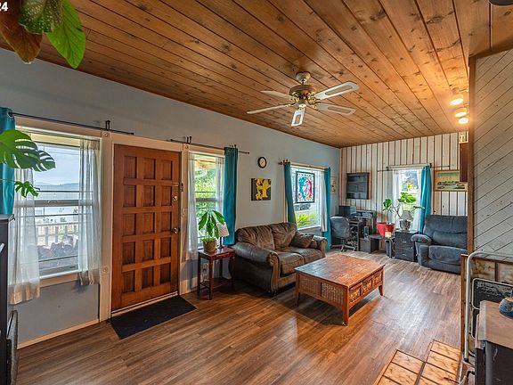 Affordable Eastside home with peek-a-boo bay views and large fenced in yard. Home features luxury vinyl plank flooring throughout, stone counters in kitchen, large laundry room, lots of storage/built-ins, single level living, 3 bedrooms, vinyl windows, and certified woodstove in living room. Yard is a gardener's delight and fence has swinging gate for secure additional boat/camper parking. Cute, clean and ready for new owners!