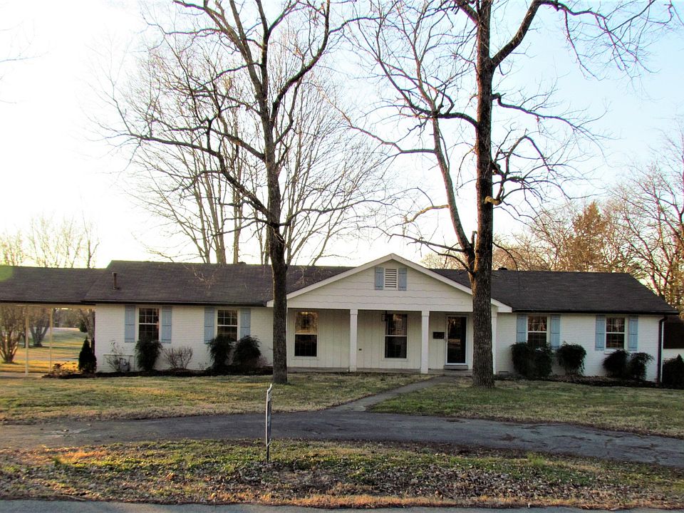 Fabulous 3 BR 2 bath home sitting on a corner lot in a quiet neighborhood on the west side of town. Open living room with a fireplace. Kitchen with island and plenty of cabinets. Separate dining room. Bonus room has huge screen great for entertaining. Fresh paint. Two driveways, one leading to covered carport and the second a circular drive. Back yard is fenced with a patio and access to the covered patio. Mature trees and storage building. Close to grocery, shopping, schools and hospital.