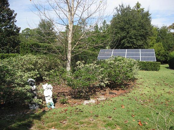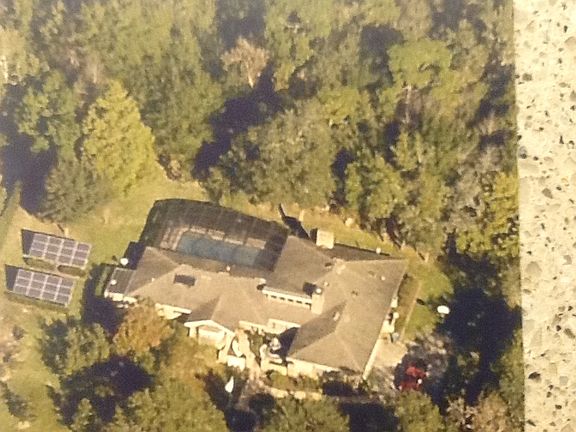 This custom built, one story, 4-sided brick home with a 3,115 sq ft living area has 5 bedrooms (3/2 split), 3 bathrooms (including a pool bath), an over-sized 3 car garage and a 51x32 ft screened pool deck of brick pavers encompassing a 16x38 ft., 20,000+ gallon Gunite (shotcrete) pool. (Total area under-roof is 4,587 sq ft.) This residence is situated on a 1.6 acre heavily wooded lot zoned for horses with 6 ft tall privacy hedges on two sides of the lot. A sidewalk of brick pavers pass through a three foot tall hedge along the paved street's concrete sidewalk and lead around a 20 foot tall flag pole to a brick wall enclosed courtyard. The courtyard contains a covered "sitting area" front porch (with ceiling fan) that overlooks a 6 foot diameter, 7 foot tall 3-tiered fountain. The double front doors open onto a ceramic-tiled hallway. To the left of the front doors is a 21x14 ft living room containing a bay window. To the right of the front doors is the 23x17 ft, vaulted ceiling family room with reflective-tinted clerestory windows and custom-designed combination wood/tile flooring. Built-in wooden shelves flank the masonry fireplace that is embedded in a 20 foot long, floor-to-ceiling brick wall. The family room opens onto a 16x25 ft covered lanai through expansive 12 foot wide sliding glass doors. The lanai has a bar-b-cue gas grill embedded in the brick exterior wall plus a bar sink with upper and lower wooden cabinetry. A 13.5x11.5 ft "guest" bedroom (with a walk-in closet) opens onto the lanai through sliding glass doors. Also opening onto the pool area through sliding glass doors are the up-dated 20x15 ft eat-in kitchen, the 14x12 ft vaulted ceiling dining room and the 18x14 ft master bedroom. The modern kitchen has a double-oven and a ceramic cook top with an exhaust hood which exhausts through the attic and out the roof. There is a huge pantry and extensive solid-wood upper- and lower-cabinets with full depth, pull out shelves in the bottom cabinets. The horizontal sliding glass wIndows behind the 3-bowled recessed sink serves as a pass-thru window to a 12 ft long shelf running along pool side. The 6x3 ft island has seating for two. The countertops are maintenance-free corian style. Between the master bedroom and the kitchen is the large dining room with wainscoting and the identical custom designed flooring as is in the family room. Across the hall from the dining room is another bedroom. It's location adjacent to the master bedroom makes it an ideal nursery...or an office as it is currently used. The view of the woods behind the pool as seen through the master bedroom's 12 foot wide sliding glass doors is a relaxing sight no matter the weather. Off the master bedroom is the walk-in closet, the master bath, and the enclosed spa area with a 2 person hot tub. The residence exterior consists of mature landscaping including a 20 ft tall macadamia nut tree; oak, palm, and evergreen trees; as well as an assortment of azaleas and other bush types. There is a rustic fire pit surrounded by seating for 20 or more. Two deep wells pump water to the sprinkler systems. A 5.28 kilowatt photo-voltaic solar array located off-the-roof, a solar heated hot water heater and thick attic insulation makes this as "green" a home as is reasonably possible as attested by an average $94/month electric bill calculated over the past 7 years. NOTES: The Zillow estimate of value does not consider the value of the $40,000 solar systems. Call (407) 278-0792 for viewing instructions. The owner has an inactive Real Estate Broker's license. Possible $10,000 commission to buyers agent upon closing.