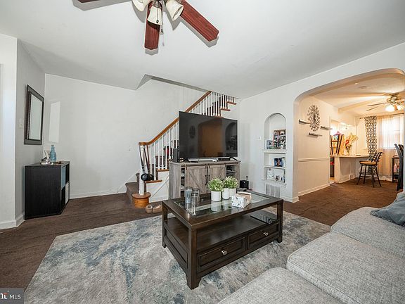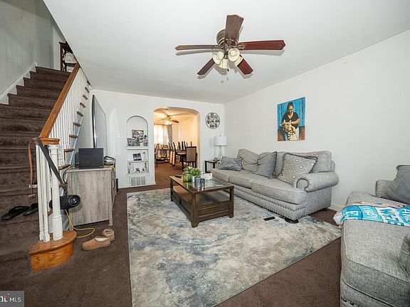 Welcome to this interior row home with a brick exterior and a delightful red front door for added curb appeal. As you step inside, you'll find yourself in the spacious living room featuring carpeted flooring and a ceiling fan to keep you cool during warmer days. A small built-in bookshelf adds character and provides space for displaying pictures and decor items. Adjacent to the living room is the dining room, also carpeted and complete with a ceiling fan and chair rail for added charm. The kitchen is conveniently located next to the dining area and boasts wood cabinets, gas cooking facilities, and a built-in microwave for your culinary needs. A breakfast bar between the kitchen and dining room creates a perfect spot for a couple of barstools, ideal for casual dining or quick meals on the go. Moving to the second floor, you'll discover three bedrooms, each dressed with wood floors and ceiling fans for comfort. A full bathroom with a tub-shower combination serves this level, offering convenience for everyday living. The walkout lower level adds versatility to the home, featuring a half bathroom and ample space for additional storage. From the lower level, you can access the back of the home, where parking space and a backyard await, providing outdoor enjoyment and practicality. This home is located nearby major highways with easy access to public transportation. Don't miss this opportunity to make this cozy row home your own, offering a blend of comfort, functionality, and charm in an average condition that allows for personalization and customization to suit your lifestyle.