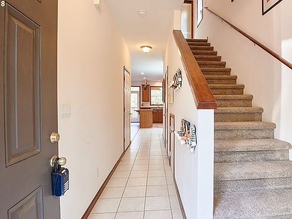 Charming Newberg Townhouse! End unit with great room floor plan that features high ceilings, laminate & tile floors, gas fireplace plus a private deck that overlooks wooded greenspace. Gourmet kitchen with granite, island, dining nook, tile, pantry & stainless steel appliances. Vaulted master suite with walk-in closet. Air conditioning. Newer carpet and water heater. Just blocks to town & George Fox University!