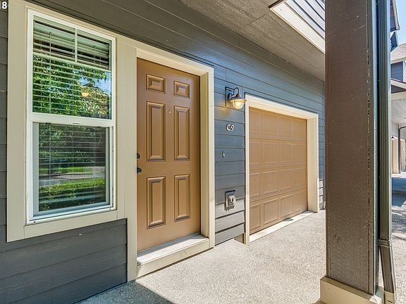 Stay cool in this air conditioned light and bright 2 story end unit. New "upgraded" carpet. New paint throughout! Stainless Steel appliances. Large Master bedroom with walk-in closet. Master bath has double sinks. Laundry w/cabinets upstairs. Enjoy entertaining on the deck (plumbed for a gas bbq) while enjoying the peaceful feeling of the treed greenspace. Terrific location to call home and for a George Fox student.