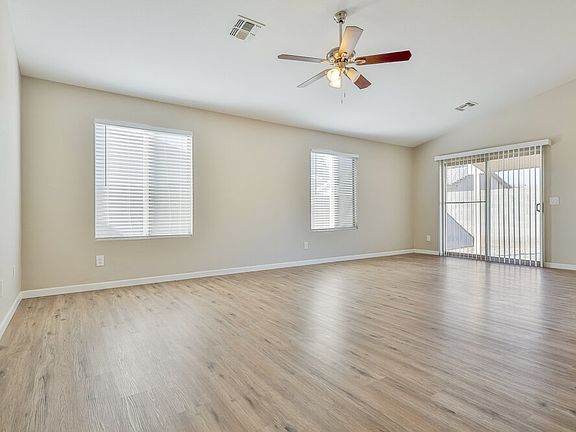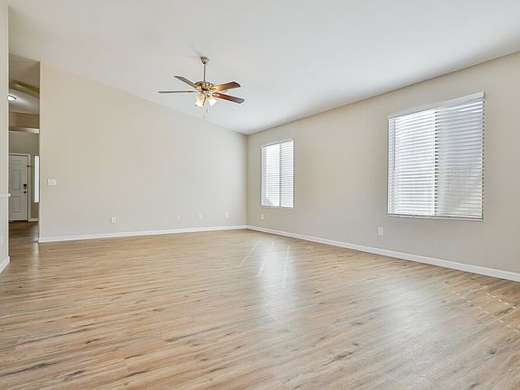 Please note, our homes are available on a first-come, first-serve basis and are not reserved until the holding fee agreement is signed and the holding fee is paid by the primary applicant. This home features Progress Smart Home - Progress Residential's smart home app, which allows you to control the home securely from any of your devices. This home is priced to rent and won't be around for long. Apply now, while the current residents are preparing to move out, or call to arrange a meeting with your local Progress Residential leasing specialist today. You'll love the details in this single-story four-bedroom, two-bathroom rental home in Buckeye, Arizona. The huge living room has a vaulted ceiling, beautiful vinyl plank flooring, and multiple windows that add wonderful light to the space. A sliding door opens to the covered patio in the fenced backyard for an extra entertaining option. The dining room includes a charming backyard-facing bay window and a chandelier for extra light. An adjacent galley kitchen has stainless steel appliances, granite counters, and an easy-to-navigate layout. The exquisite private main bedroom suite has an en suite bathroom with a walk-in closet, a tub, water closet, and dual sink vanity with plenty of added storage. Tour this unique rental home today.