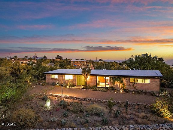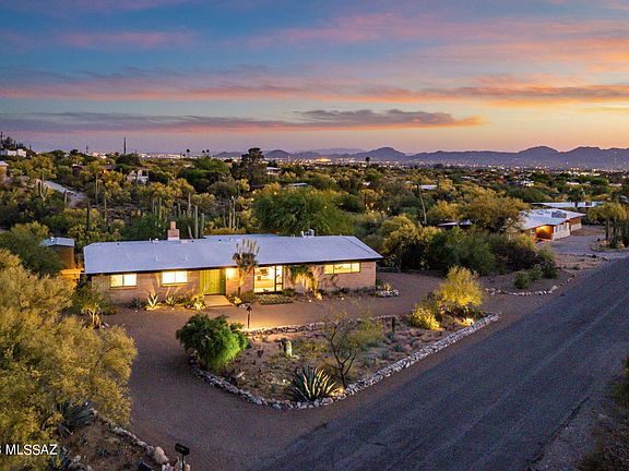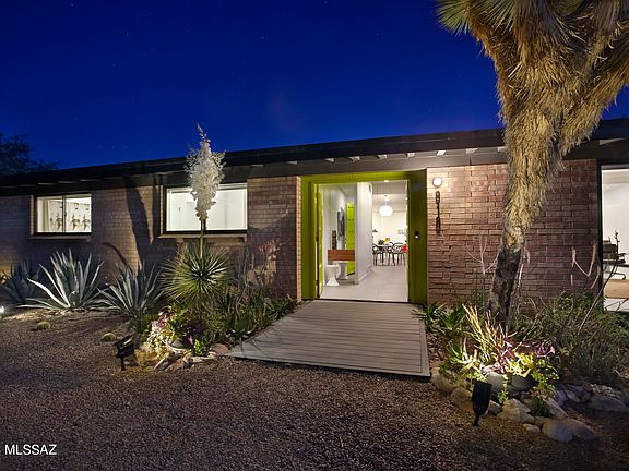 When the current owner, an Architectural Designer with Rob Paulus Architects saw this one owner Mid-Century Modern Ranch Home in 2016, he immediately recognized the potential and knew right away he could transform it into something spectacular! Transform it he did, and the end result is nothing short of perfection! Armed with exquisite good taste and a trained eye for modern design, the current owner embarked on a remodel that brought this 1963 Foothills home up to modern standards and finished it to a level of modern sophistication rarely seen in Tucson! As a native Tucsonan, the owner was also conscious of preserving the natural feel of the desert and was successful in bringing the outside in through large floor to ceiling windows that frame the desert landscape. When you start with a blank canvas, one's imagination can run wild, and when you turn an architectural designer loose on their own house, the possibilities are endless - and this one is sure to impress! One step inside the front door, you will appreciate the open sense of space highlighting beautiful large format porcelain tile floors, a fireplace w/marble hearth and the gourmet kitchen w/custom walnut cabinets, quartz countertops, Samsung smart stainless appliances and large island with an induction cooktop. Lutron Caseta smart lighting is found throughout the main living space and primary suite. Linked through an iPad, the owner can control all aspects of the home's lighting, music, heating & cooling, home security & kitchen appliances. This manageable and spacious floorplan offers 3 bedrooms & 2 bathrooms in the main residence and an attached 1 bedroom/1 bathroom guest casita w/private entrance. From the entry, living room & Primary Suite, you will find spectacular Catalina Mountain views towering above reminding you why we live here! With over 40 Saguaros on the property, the private backyard oasis features mature shade trees, lush desert plantings and an impressive number of the saguaros clustered together creating a beautiful backdrop for the proposed new pool location. A potential site plan for the property includes the location of a spa/pool and a large garage with a workshop or storage. This stunning Foothills masterpiece is conveniently located just 15 min from the UofA, UMC, downtown, and I-10 making it an ideal location.