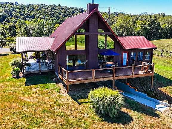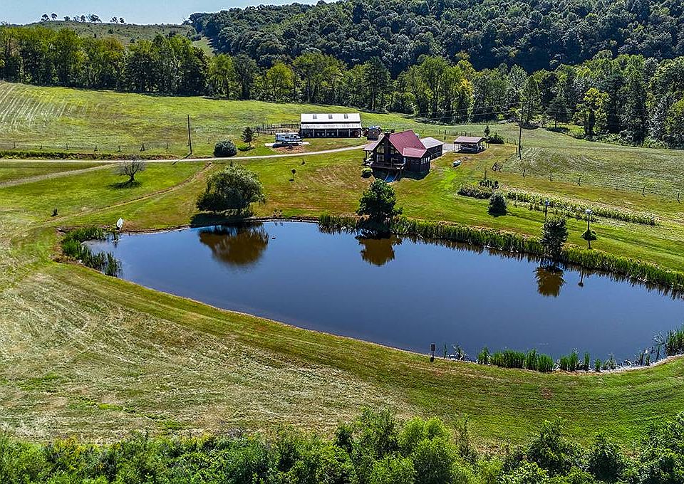 328.20 acres of prime land in Scioto County, Ohio, featuring a custom 3 Bed, 1.5 bath home, multiple barns, private pond, and five-strand electric fencing. An exceptional property for farming, hunting, recreation, or rural living. The home combines rustic charm with modern comfort, offering wood siding, a metal roof, vaulted living room with stone fireplace, spacious kitchen with quartz countertops and high-end appliances, sunroom/office, two bathrooms, and a 840 SqFt full walk-out basement. Outdoor living includes a large front deck and covered porch with peaceful views of pasture, pond, and woods. Outbuildings provide excellent utility:40x50 block barn with 6 stalls, loft, lean-tos, water & electric 30x40 bank barn 24x34 open-front barn 13x19 covered concrete pad at the pond.The land is fully fenced and ideal for cattle, horses, or other livestock. There are miles of trails throughout the property for easy access Hunting and recreation. Rolling pastures, wooded acreage, and meadows also make it a trophy hunting property with abundant deer and turkey. Utilities include propane heat, electric A/C, city water, septic, and high-speed internet. A rare opportunity to own a turnkey Southern Ohio property with unmatched beauty and versatility.