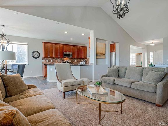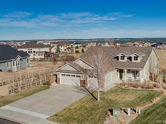 Impressive ranch on a cul-de-sac that backs to open space! Boasting stunning surroundings, this spacious three-bedroom has been freshly painted and features a new roof and new heating system. Engulfed in natural light, the living room presents a soaring vaulted ceiling and gorgeous brick-surround fireplace. Open and bright, the kitchen showcases stainless steel appliances, a new refrigerator, upgraded cabinetry, and slab granite countertops. Space for casual dining in the breakfast nook with breathtaking views! The formal dining room features an elegant trey ceiling and abundant natural light. Retreat to the generous master suite appointed with a large walk-in closet and an opulent five-piece bathroom. Plentiful room to spread out with two additional bedrooms and a full bathroom. The office is the perfect place to work from home. Laundry is easy with a new washer and dryer! Explore infinite possibilities in the unfinished basement. The expansive, lighted back porch overlooks the vibrant lawn, which extends out to the wonderful open space. The beautiful backyard is complete with abundant shrubbery and trees. Park comfortably in the three-car attached garage! Ideally located on a quiet cul-de-sac in the desirable Castlewood Ranch neighborhood. Close to excellent Douglas County schools, Castlewood Canyon State Park, Hwy 83, and CO-86. Don't miss out on this remarkable home.