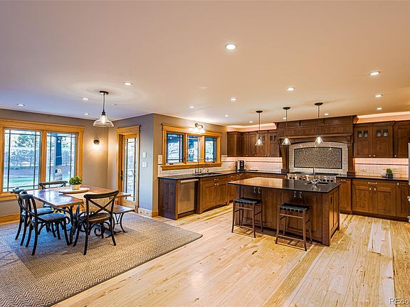 Settled in the hidden enclave of Front Range Road you'll find this magnificent mountain contemporary home sitting on over an acre of land, boasting spectacular outdoor living, an open floor plan and exquisite tile and wood work throughout. This residence was completely remodeled, down to the studs, in 2007. Enter through the two-story foyer to find a huge family room accentuated by a soaring 17' ceiling, two-story windows and a gas log fireplace encased in stone. The gourmet eat-in kitchen will provide a genuine chef's experience with honed granite countertops, oversized island, custom cabinetry, high-end appliances and walk-in pantry. An adjoining morning room overlooks the backyard and leads out onto the expansive patio hosting an outdoor bar & grill area, fire pit and hot tub. A window-wrapped living room, formal dining room, bedroom & 3/4 bath complete the main level. Upstairs a serene primary suite offers the perfect place to unwind, whether you snuggle up with a good book in the sitting area, lounge on your private, south-facing balcony, or retreat to the spa-like 5-piece bath featuring a free-standing soaking tub and beautifully tiled, dual head glass shower. Four secondary bedrooms, two configured for office use, and two baths round out the second floor. The finished basement is the epitome of additional living space with two open rec areas and a 3/4 bath. Discover true paradise in the vast, private yard with room for a garden/ small urban farm as well as extensive space to entertain. Other features include an artificial grass area/batting cage and large, heated barn functioning as an additional two-car garage. Escape to this rural oasis without sacrificing convenience downtown Littleton is a 5 minute drive, you're walking distance to surrounding parks & trails, and have quick access to public transportation. An elevated lifestyle awaits in this truly special home where friends and family will gather to build new memories.