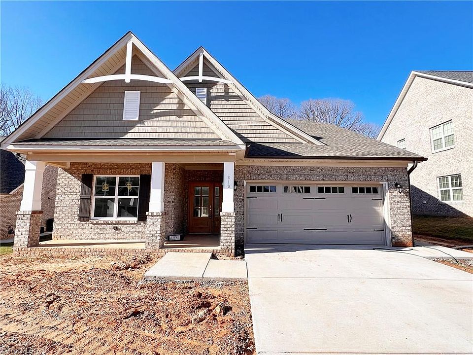 Arden's cottage meets craftsman Sherwood plan offers main level living at its finest. The open concept layout offers a kitchen with upgraded cabinets, SS appliances (including a gas range) & quartz countertops that flow directly into the great room. The great room has a marble surround FP w/gas logs & easy access to the covered porch. Master bedroom, laundry, and additional bedroom on main level. Master bedroom includes great natural lighting w/tile walk-in shower in the bathroom. Upstairs includes 3 storage areas, add'l full bath, third bedroom & loft! One of Arden's most popular floor plans, the Sherwood is a must see! Move-in Ready end of January '23.